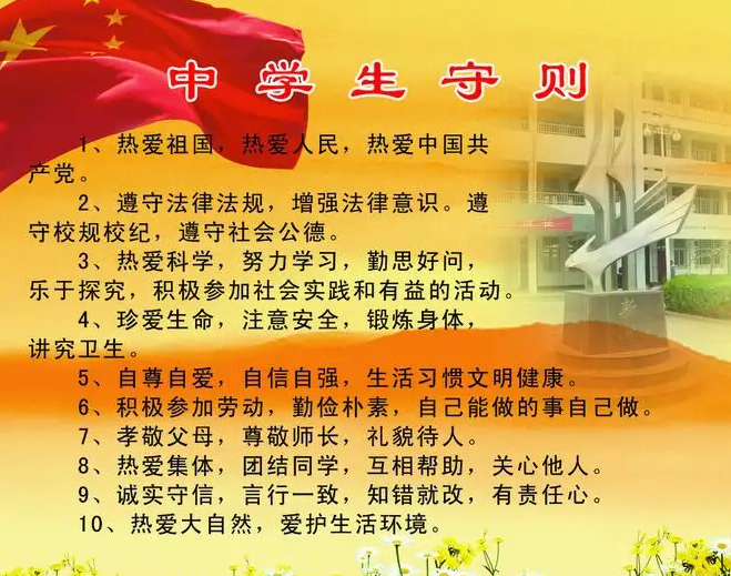 合并后的《守则》仍为十条,修订后的两个《标准》仍各为二十条和四十条。依据中小学生身心发展特色和规律,《守则》从大处着眼,对学生思想品德形成和行为习惯养成提出了基本要求,《标准》从小处着眼,从行为习惯养成下手,提出详细的、操作性较强的要求。《标准》是对《守则》的细化,两者应结合运用。《守则》和《标准》除对部分内容进行修改和调整外,依据社会发展对人才培养提出的新要求,分别增加了契合时代特征的内容。如诚实守信、加强实践、协作认识、创新认识、网络文明、安全自护、远离毒品等。广大干部、教师应依据学生的学习、日子实践及思想状况变化,帮忙学生增强国家观念、道德观念、法制观念,懂得什么是正确的,什么是错误的,提高分辨是非、区分善恶的才能和道德选择与行为评价的才能。要安排展开多种形式的校、表里教育活动,帮忙学生了解、回忆,增强守法、守规、守纪的认识。