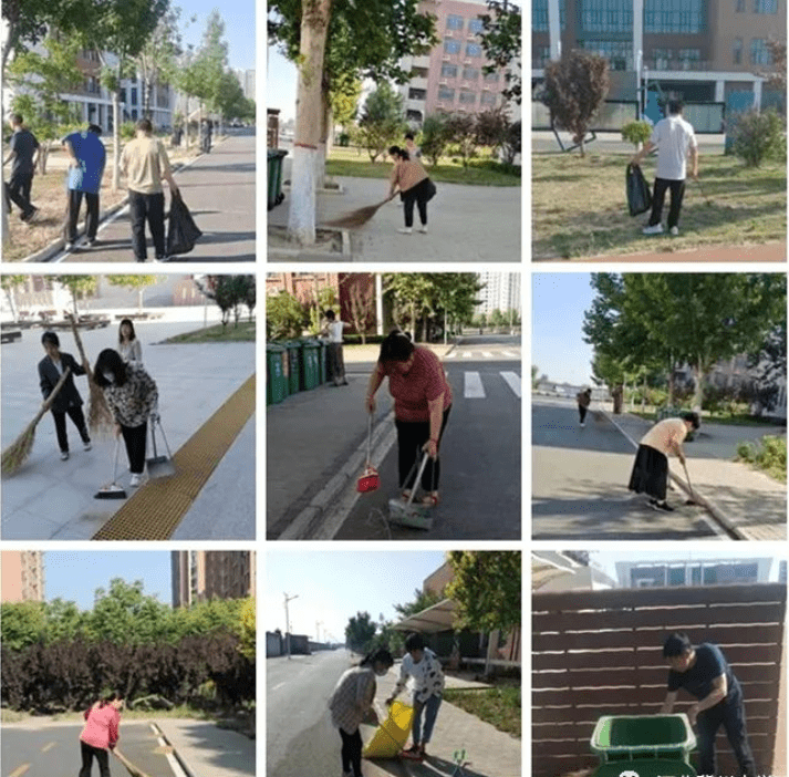 打扫校园卫生,为考生营造洁净整齐的校园环境。
