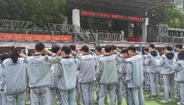 株洲市十八中高二級部整體師生匯聚於大操場上,舉辦2023年高二學考30天沖刺誓師大會。