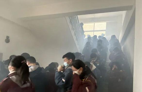 在整個消防分散演練中,學生們選用火場逃生分散演練技巧,用口罩或衣角捂住口鼻低頭折腰扶墻下樓進行有序分散,充分體現出了傑出的消防安全素質。