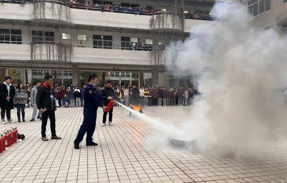 隨後,玄武區消防大隊消防員周洲同誌為全體師生詳細講解了幹粉滅火器的使用方法和註意事項並進行演示,學生代表與教師代表順次進行了實操演練。