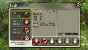 天山派的技術總共有8種,分別是天山普攻、八荒六合、陽關三疊、偷梁換柱、存亡符、隱遁、雪花六出、陽歌天鈞(大招)。天山普攻:超普通技術(必備)進犯單個近身敵人近攻!