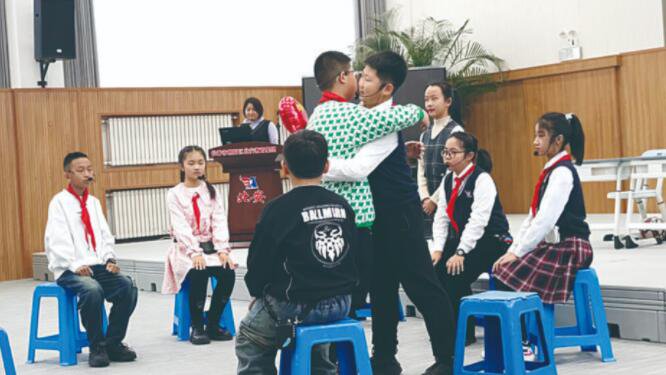 「這是孩子們自導自演的劇目,我們準備了一個多月,閱歷了4輪展演。」看著舞臺上孩子們左右逢源的扮演,輔導教師王麗華滿是歡喜,她說,展演不只是舞臺上的扮演,更是一次團體心思教導,孩子們將在日子、學習、往來中的沖突、煩惱、困惑等,以小品扮演、景象對話等辦法編成「小劇本」扮演,在進程中領會一個個道理,處理一個個問題,將實踐中取得的心思知識轉化為健康成長的營養,校園守時舉行的「心思小劇場」由此而來。